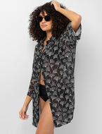 This long swimsuit cover-up brings light, effortless elegance with its shirt collar and allover print. Easy to button and comfortable to wear, it adds style to every sunny moment.