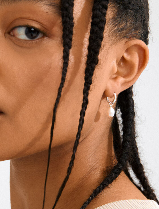 Anneaux plaqués or ou argent à texture tressée avec véritables perles d’eau douce. À porter avec ou sans pendentifs selon l’occasion. Fermoirs à cliquet pratiques et style raffiné pour une touche de luxe intemporelle.
