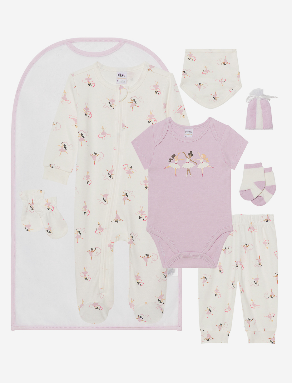 Un ensemble pratique et adorable comprenant un pyjama, un cache-couche et un pantalon imprimés, accompagnés d’accessoires assortis, le tout présenté dans une housse pratique. Parfait pour un cadeau ou pour habiller bébé avec style et confort.