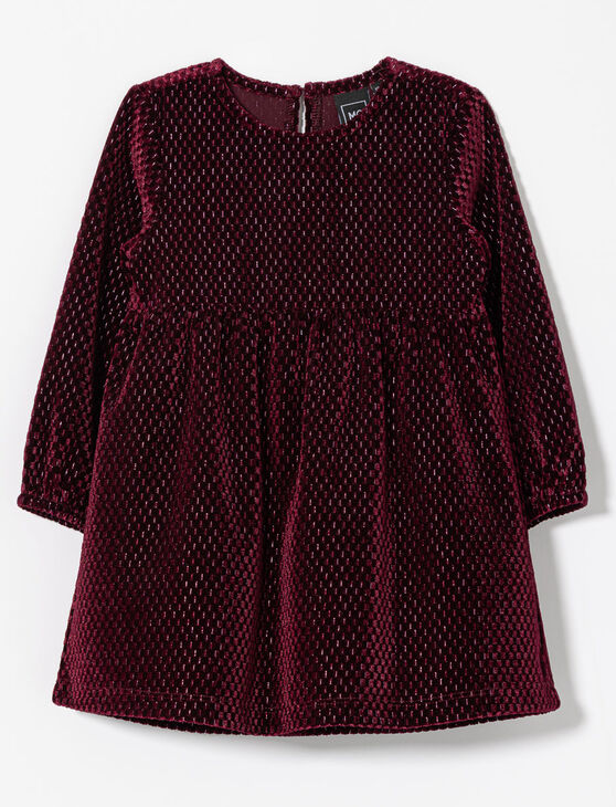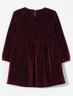 Parfaite pour les occasions spéciales, cette robe brillante pour bébé fille est conçue dans un tissu doux et scintillant. Avec sa taille cintrée et ses manches longues, elle offre un look à la fois élégant et confortable.