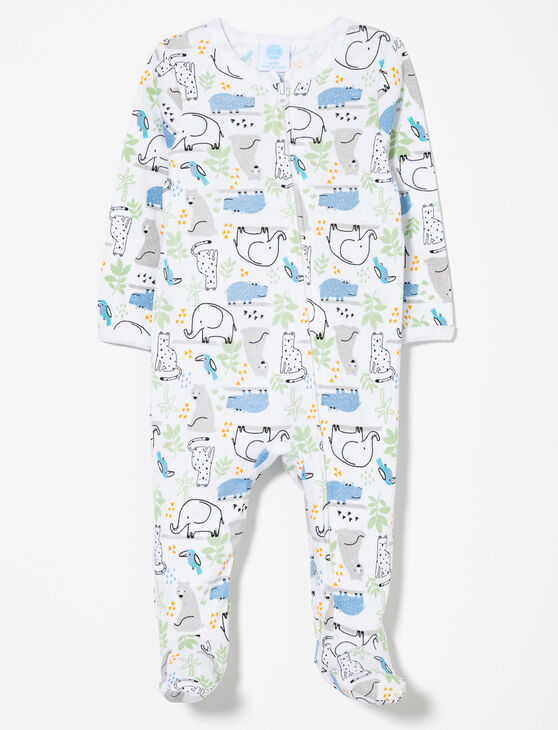 Une escapade tropicale à l’heure du dodo ! Ce pyjama à fermeture éclair s’enfile en un éclair et garde bébé bien couvert grâce à ses pieds intégrés. Confort et douceur pour les rêves les plus sauvages.