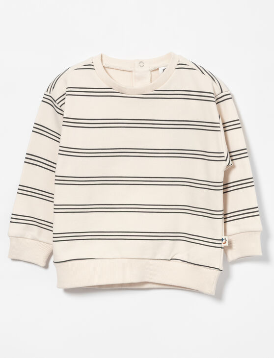 Ce chandail à rayures est tout doux et parfait pour les journées de jeu ou de câlins.