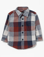 Chemise en flanelle pour bébé garçon, à manches longues et col chemisier. Dotée d’une poche avant, d’une fermeture à boutons et d’un motif à carreaux, elle allie confort et style au quotidien.