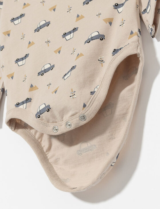 Ensemble 2 pièces comprenant une salopette matelassée avec poche avant et un haut manches longues imprimé, accompagnés de bas assortis. Idéal pour habiller bébé avec confort et douceur.