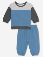 Un ensemble douillet au style moderne grâce à son effet matelassé et ses blocs de couleur. Le chandail à col rond et le pantalon à taille élastique assurent confort et liberté de mouvement au quotidien.