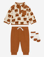 Ensemble 2 pièces avec pantalon et chandail en sherpa à demi-zip, accompagné de chaussettes assorties. Confortable et pratique, il garde ton petit au chaud tout en douceur.