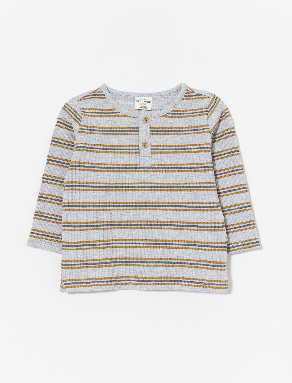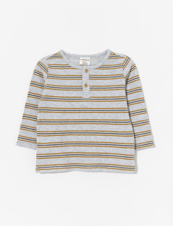 Un look douillet et tendance avec ce 3 pièces comprenant un t-shirt thermal à col henley imprimé, un pantalon en molleton confortable et une tuque assortie. Idéal pour la saison fraîche.