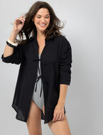 Complétez votre tenue de plage avec ce couvre-maillot à nœuds, léger et facile à porter. Son col chemisier, ses manches longues et sa coupe fluide créent un look décontracté et chic pour profiter pleinement du soleil.