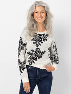 Ce chandail en tricot jacquard fleuri à manches longues et col rond apporte chaleur et élégance, parfait pour un style féminin et confortable.