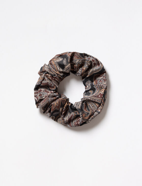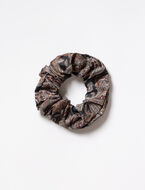 Chouchou pour cheveux avec motif fleuri sur l’ensemble. D’un diamètre de 10 cm et d’une largeur de 3 cm, il ajoute une touche féminine à toutes les coiffures.