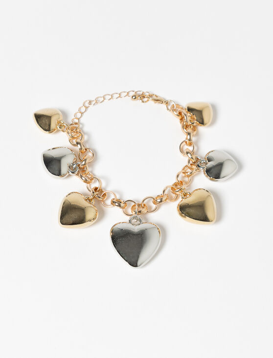 Un bijou plein de charme ! Ce bracelet à breloques cœurs dorés et argentés apporte une touche romantique et lumineuse à votre poignet.