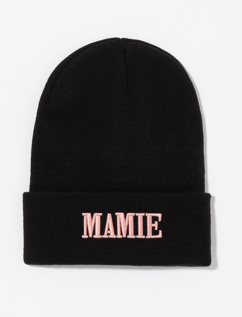 Offrez à Mamie chaleur et douceur avec cette tuque en tricot brodée MAMIE, parfaite pour lui rappeler qu’elle est spéciale à chaque sortie.