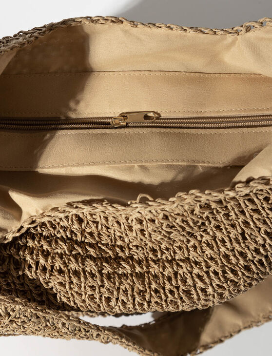 Sac fourre-tout en paille texturé, au design simple et naturel, parfait pour la saison estivale. Doublure en polyester pour une meilleure durabilité.