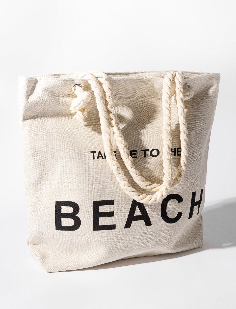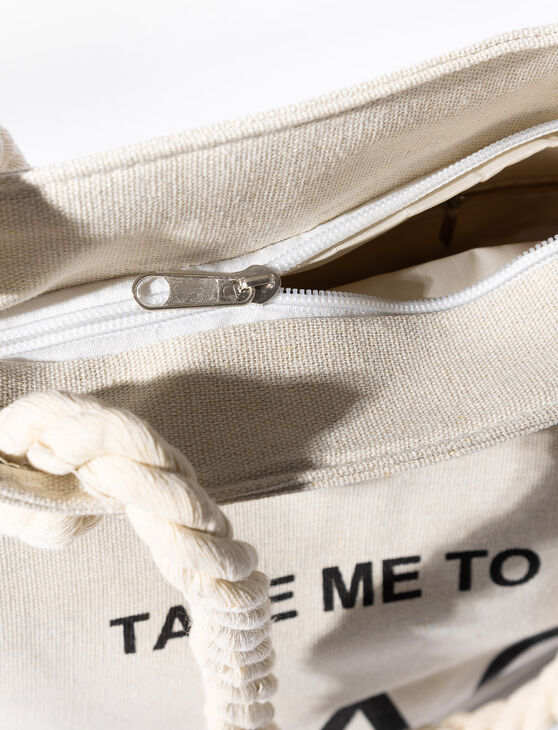 Sac fourre-tout imprimé avec ganses en corde de coton pour un style estival et pratique. Idéal pour la plage ou les sorties quotidiennes.
