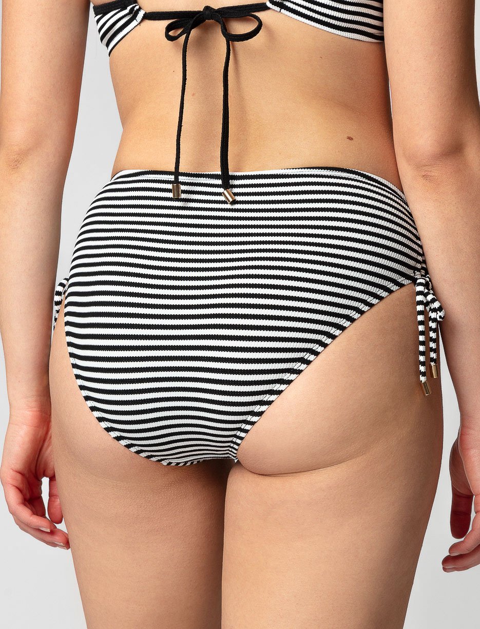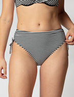 Des rayures classiques sont combinées à une coupe moderne pour ce bas de bikini. La coupe taille haute offre une couverture flatteuse, idéal pour des escapades au bord de la mer ou des moments de détente ensoleillés.