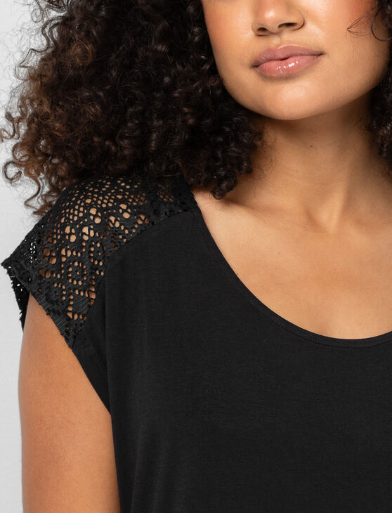Cette tunique douce mise sur des manches dolman fluides et de délicats détails crochet aux épaules et au bas. Une pièce simple et élégante, parfaite pour ajouter une touche raffinée à vos journées ensoleillées.