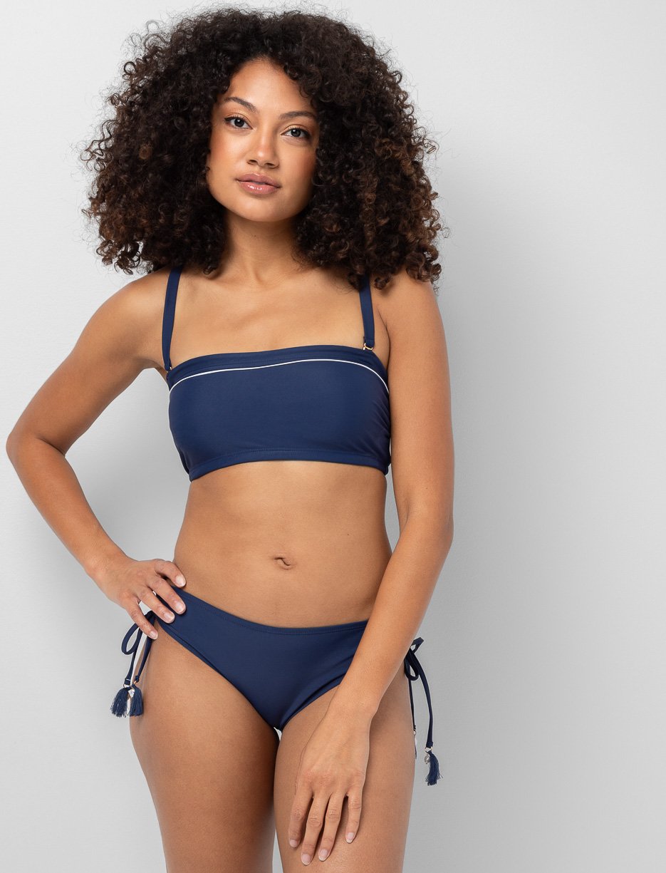Un haut de bikini bandeau avec bretelles amovibles et laçage au dos pour un ajustement sur mesure. Sa coupe épurée crée un style moderne et modulable, idéal pour profiter de l’été en toute simplicité.
