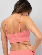 Ce haut de maillot bandeau mise sur un tissu côtelé qui ajoute une touche moderne et flatteuse. Ses bretelles amovibles permettent un porté modulable, parfait pour profiter du soleil avec style et confort.