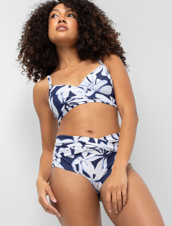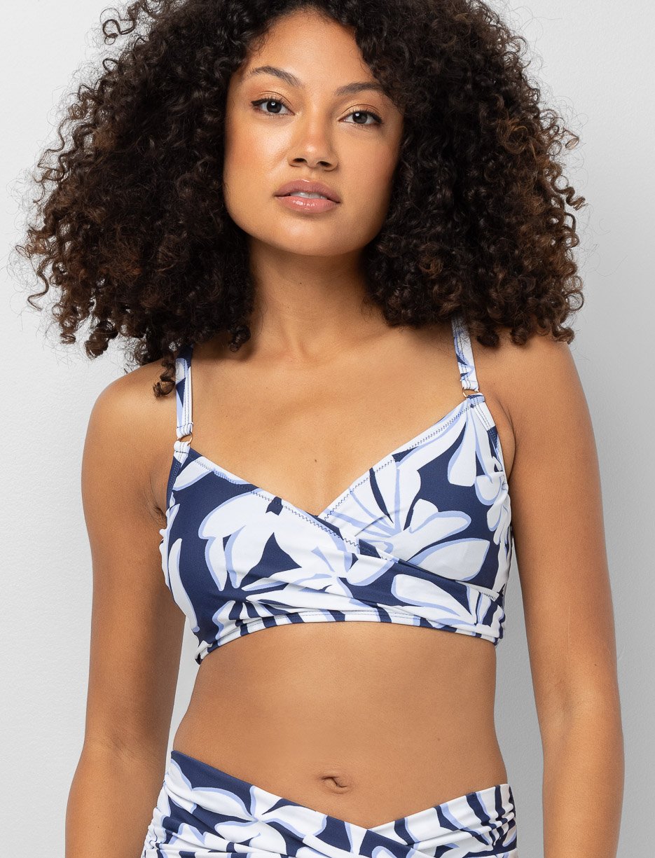 Un haut de bikini croisé à armature et bonnet D qui met l’accent sur un maintien élégant. Ses bretelles ajustables permettent un ajustement personnalisé et créent un style moderne idéal pour les journées au soleil.