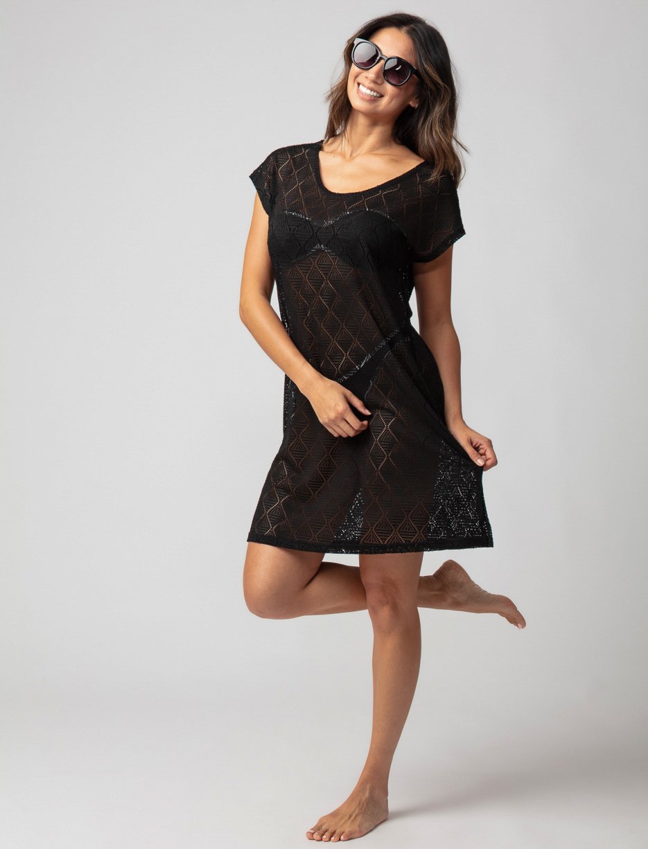 Cette tunique de plage en crochet allie élégance et confort. Son motif ajouré délicat apporte une touche chic, tandis que son tissu léger garantit une sensation de fraîcheur.