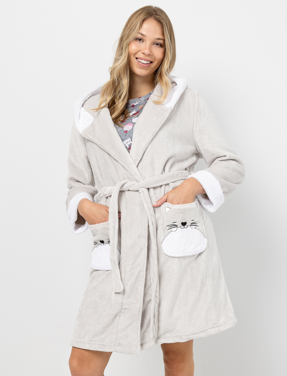 Robe de chambre en peluche avec poches chat