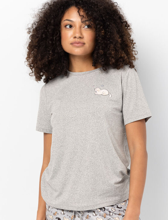 Ajoutez une note douce à vos soirées avec ce t-shirt de pyjama imprimé. Un essentiel léger qui accompagne vos moments de détente et crée une ambiance confortable dès que vous le portez.