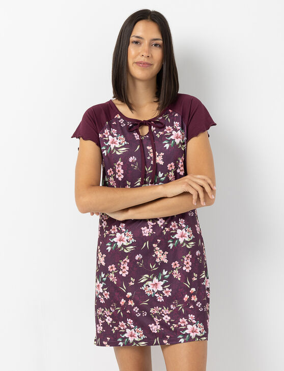 Chemise de nuit fleurie à manches volantées