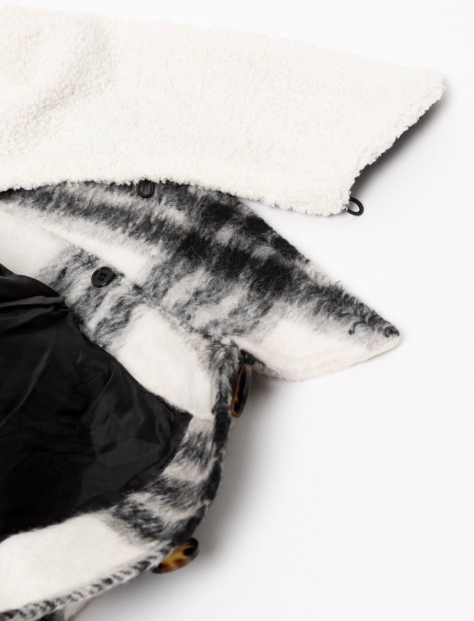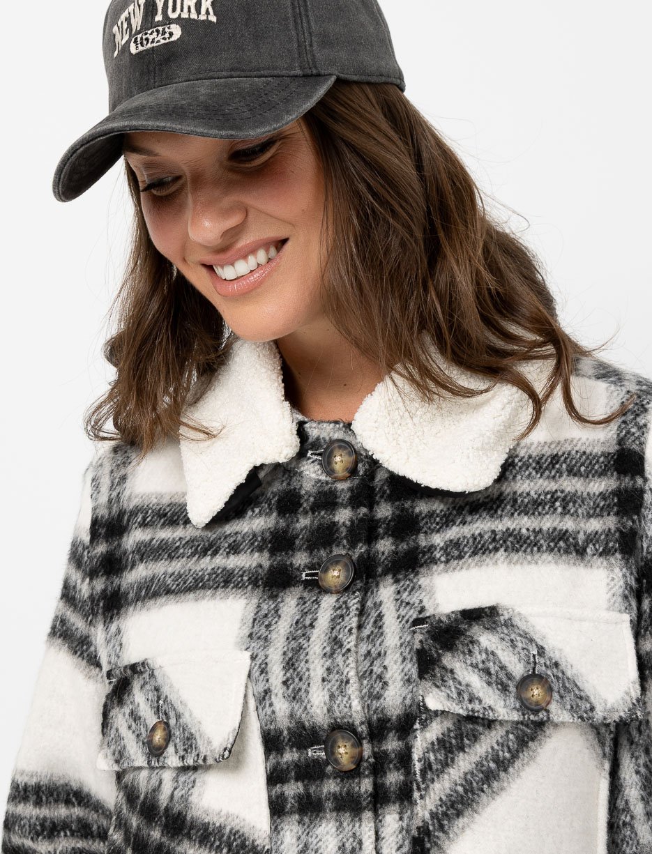 Ce manteau à carreaux se démarque par son col sherpa douillet qui ajoute chaleur et style. Avec sa coupe confortable et tendance, il est parfait pour affronter les journées fraîches.