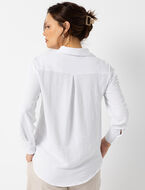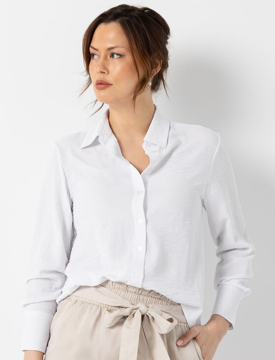 Polyvalente et fluide, cette chemise promet des tenues soignées en un clin d’œil. Portée ouverte ou boutonnée, elle fait toujours bonne impression.