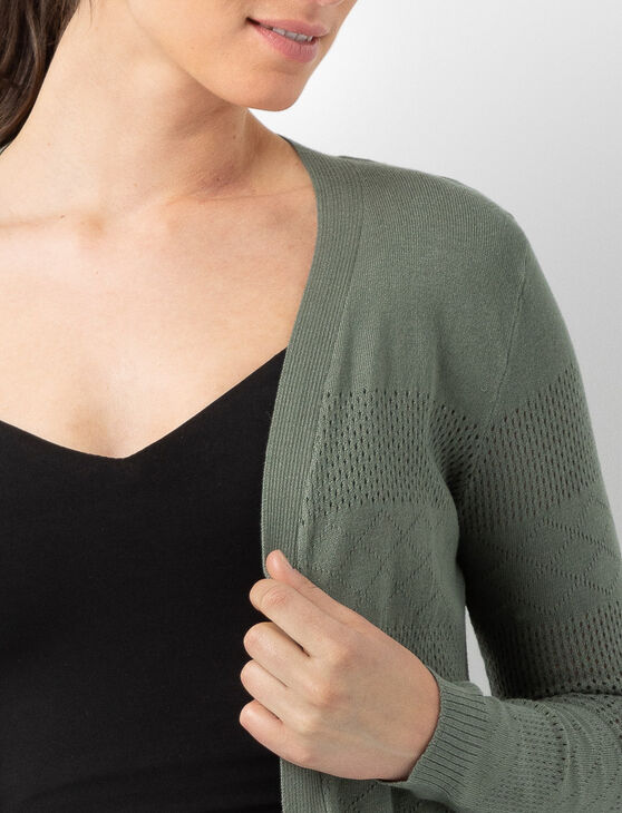 Léger, fluide et sans fermeture, ce cardigan en maille ajourée réchauffe juste ce qu’il faut tout en laissant respirer. Parfait pour les superpositions stylées et confortables.