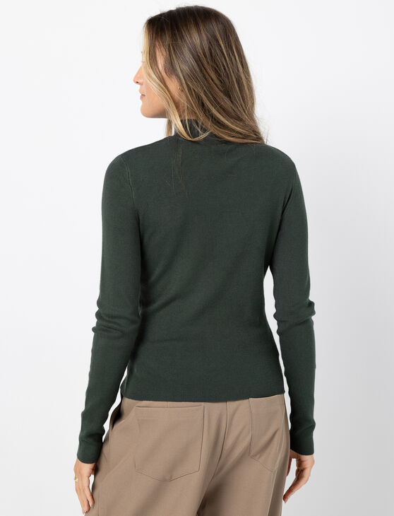 Ce chandail à col montant offre chaleur et élégance, avec une coupe ajustée qui se porte facilement seule ou sous une veste. Un essentiel pour un style chic et confortable.