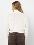 Chandail en tricot à col roulé, coupe courte et épaules tombantes pour un style moderne et décontracté. Parfait pour superposer ou porter seul.