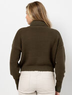 Chandail en tricot à col roulé, coupe courte et épaules tombantes pour un style moderne et décontracté. Parfait pour superposer ou porter seul.