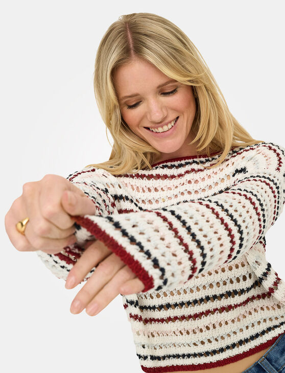 Une explosion de couleurs dans un motif ajouré qui respire l’été. À porter par-dessus une camisole pour une tenue vibrante.