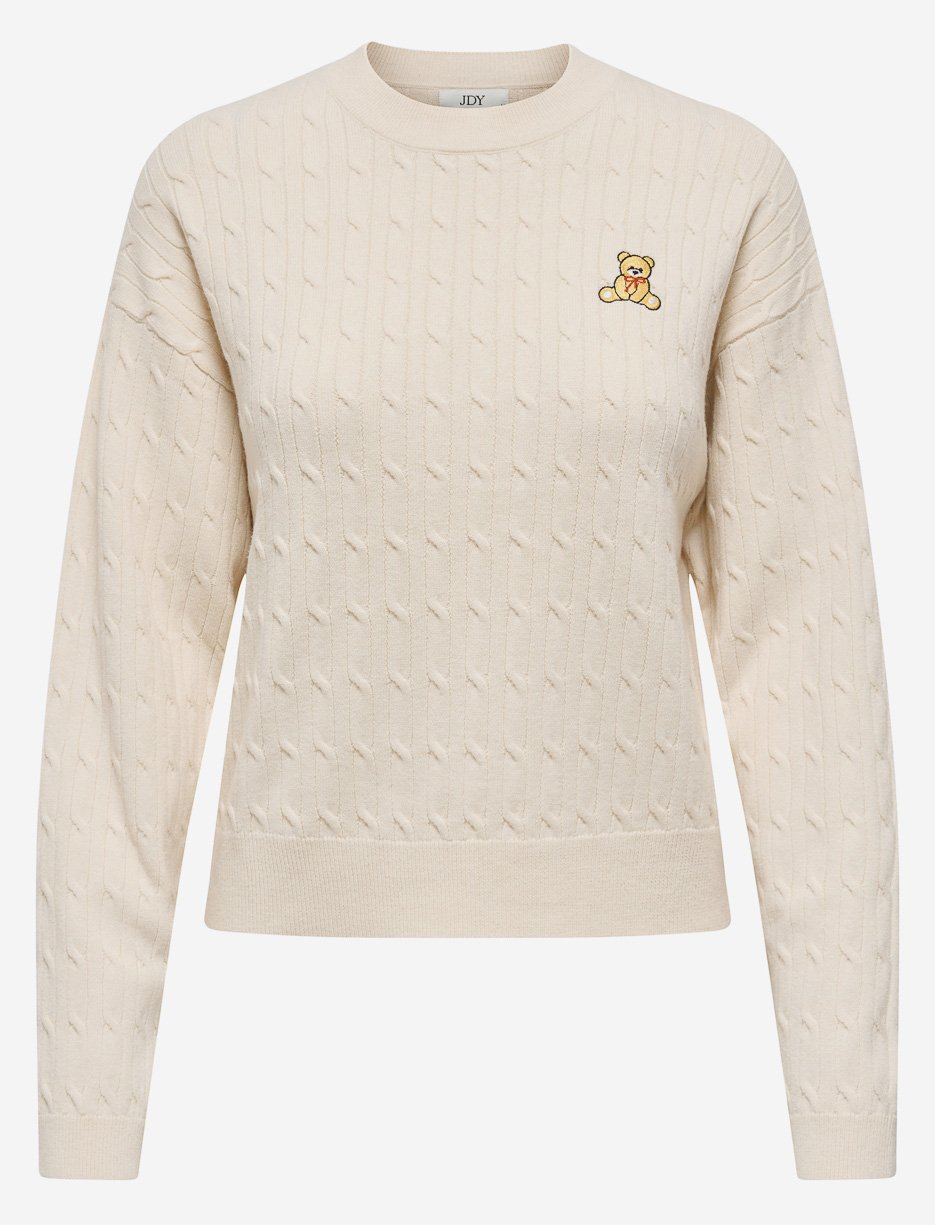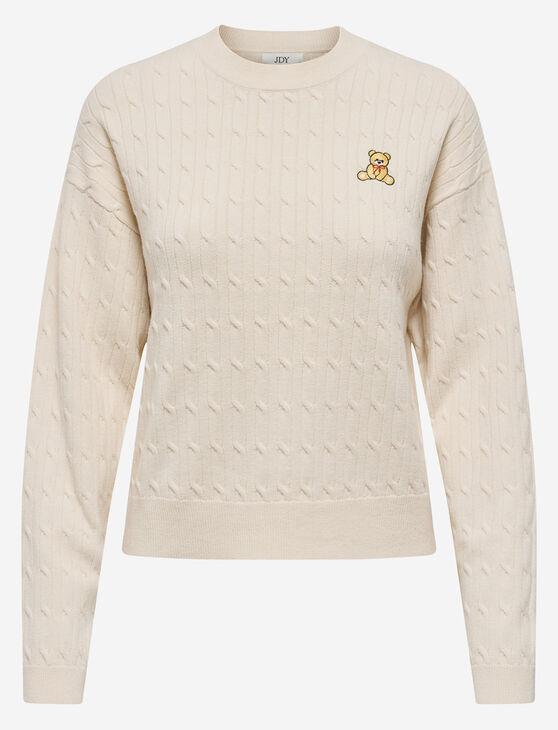 Doux, câblé et orné d’un ourson brodé, ce chandail en tricot à col rond est la touche mignonne et confortable qu’il manquait à votre garde-robe.