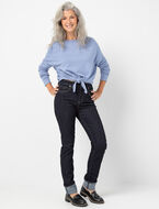Confort et style se rencontrent avec ce jean droit taille régulière, doté de poches pratiques et d’une fermeture bouton-zip. Un essentiel polyvalent à porter en toute occasion.