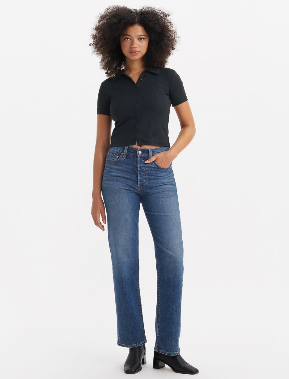 Jean Levi’s Ribcage à jambe droite et taille haute, longueur 32". Modèle stretch conçu pour offrir confort et style au quotidien."
