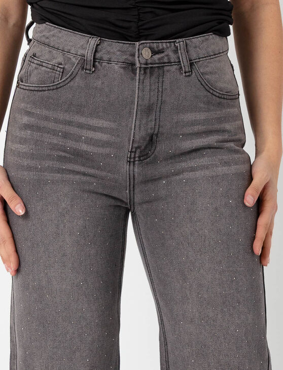Jean jambe large à taille régulière avec strass