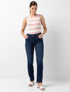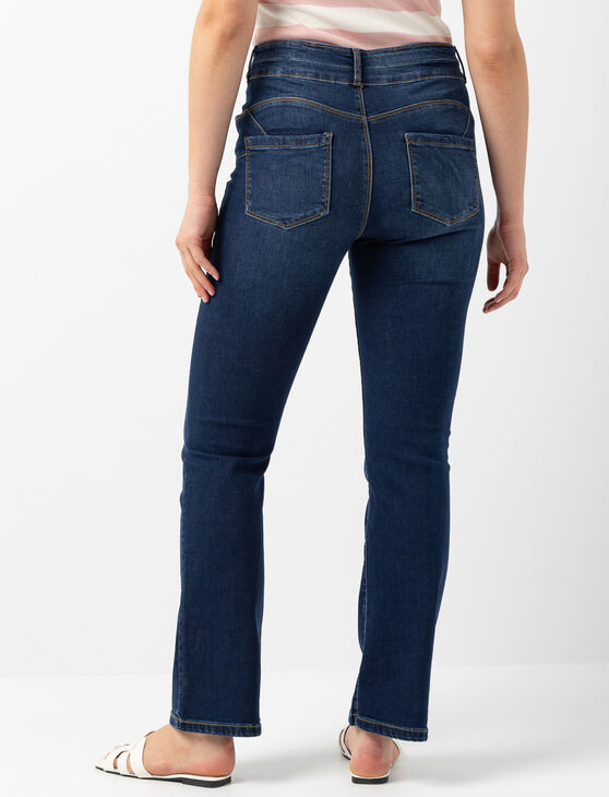Un jean ajusté juste ce qu’il faut, avec une jambe subtilement évasée. Classique mais jamais banal, il s’intègre facilement à toutes les routines.
