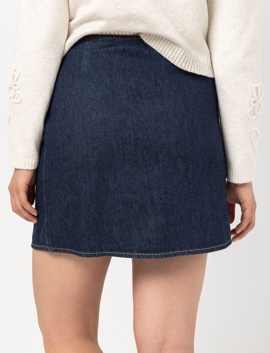 Complétez votre garde-robe avec cette jupe en denim moderne. Sa coupe simple rehaussée de boutons décoratifs offre un style polyvalent, facile à porter autant au quotidien qu’en sortie décontractée.