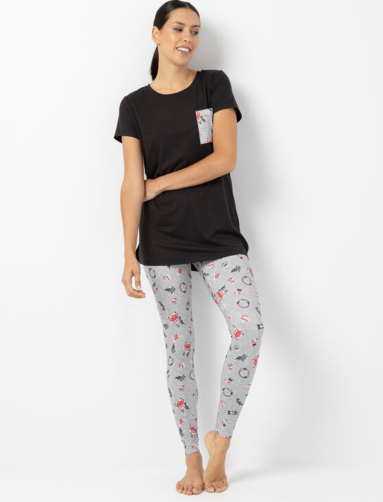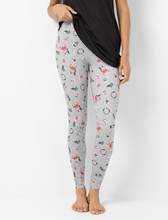 Confort et esprit festif se rencontrent dans ce legging doux et amusant aux motifs de saison. Idéal pour relaxer à la maison ou ajouter une touche joyeuse à vos soirées cocooning.