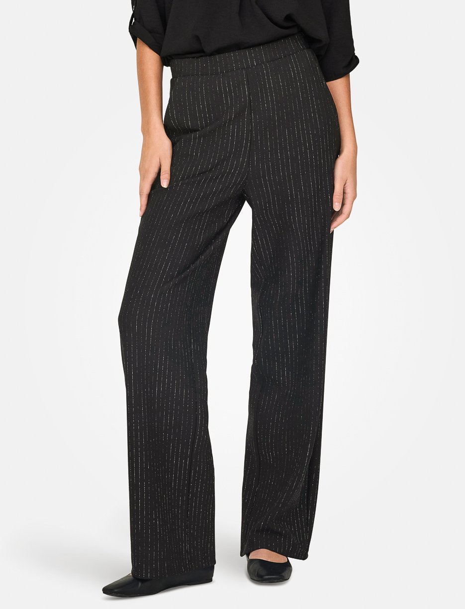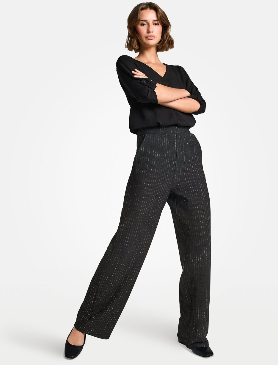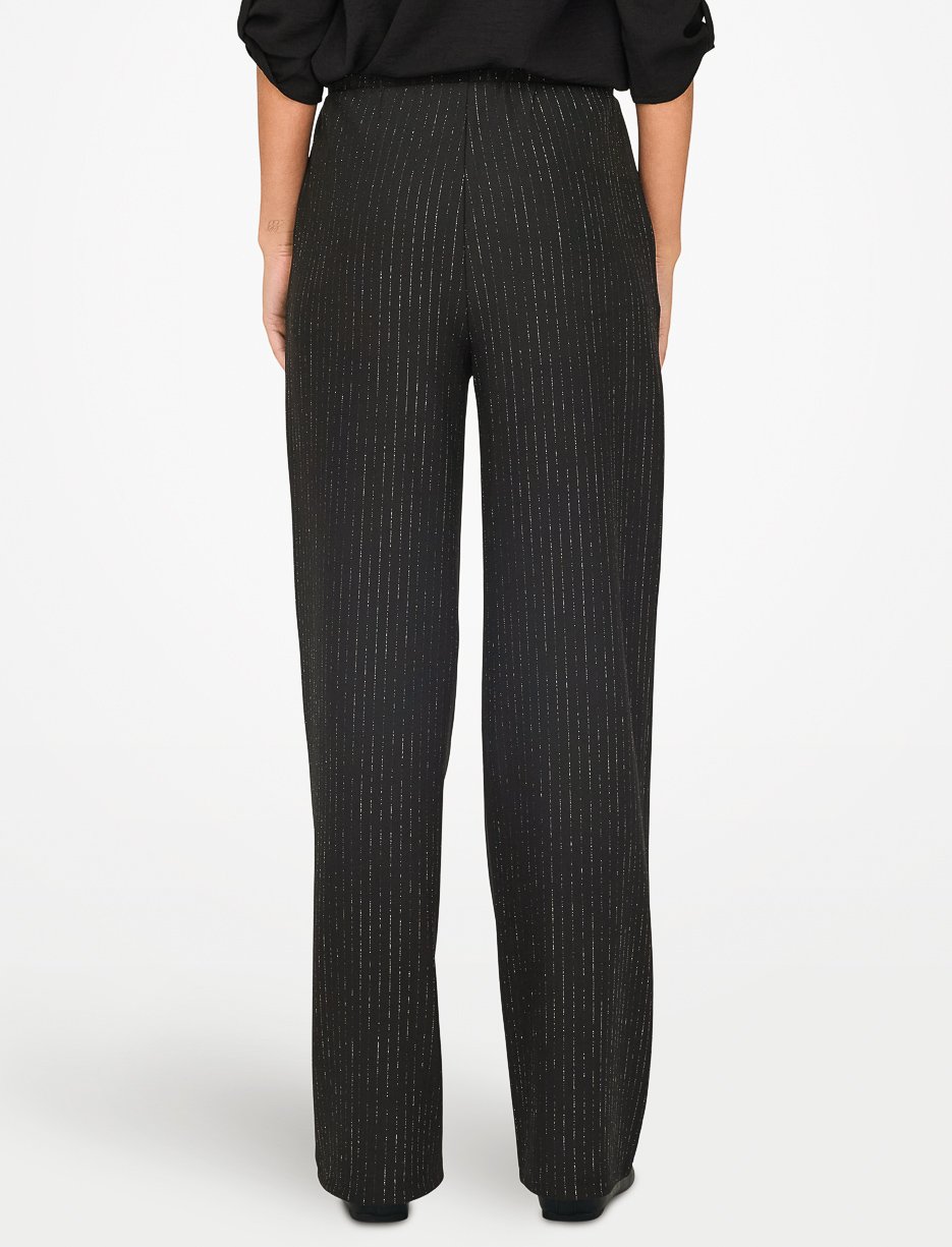 Avec sa coupe fluide et son effet scintillant, ce pantalon à jambes larges ajoute une touche d’éclat à votre tenue de jour comme de soir.