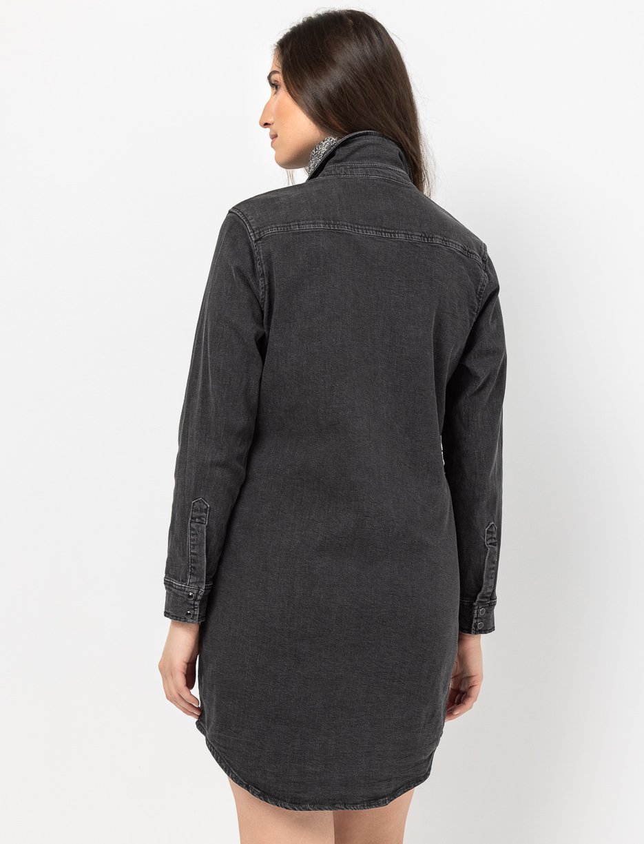 Cette robe chemise en denim combine confort et style décontracté. Avec ses poches à rabat et sa coupe boutonnée, elle se porte facilement seule ou avec une ceinture pour marquer la taille.
