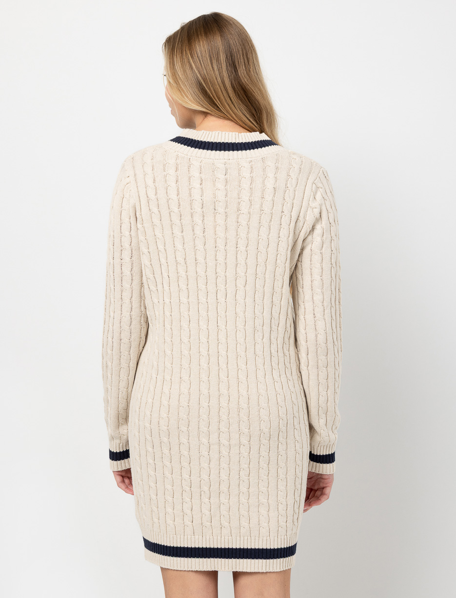 Une robe en tricot torsadé à manches longues qui marie chaleur et élégance. Idéale pour un look doux et raffiné pendant la saison fraîche.