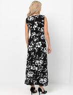 Misez sur l’élégance avec cette robe longue sans manches rehaussée d’un imprimé floral contrastant. Sa coupe fluide et son drapé à la taille créent une silhouette féminine et raffinée.