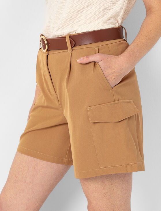 Une coupe soignée avec une touche utilitaire. Ce short ceinturé à poches cargo allie style structuré et praticité assumée.