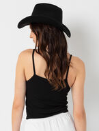 Cette camisole côtelée est idéale pour l'été avec son délicat détail floral brodé. Sa coupe courte et ses fines bretelles offrent un style léger et respirant, parfait pour les journées ensoleillées.