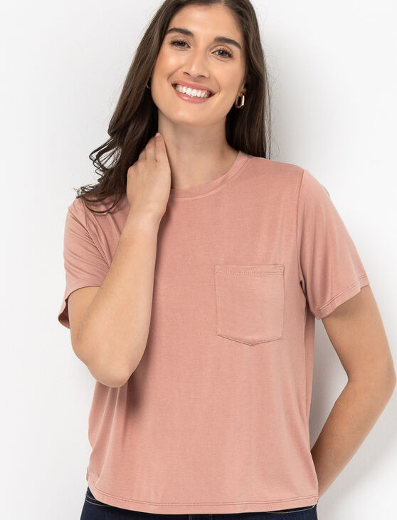 Un essentiel tout en douceur qui s’agence avec tout. Son tissu soyeux et sa poche ton sur ton ajoutent juste ce qu’il faut de style pour vos looks simples mais impeccables, jour après jour.