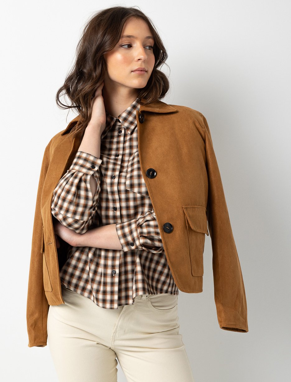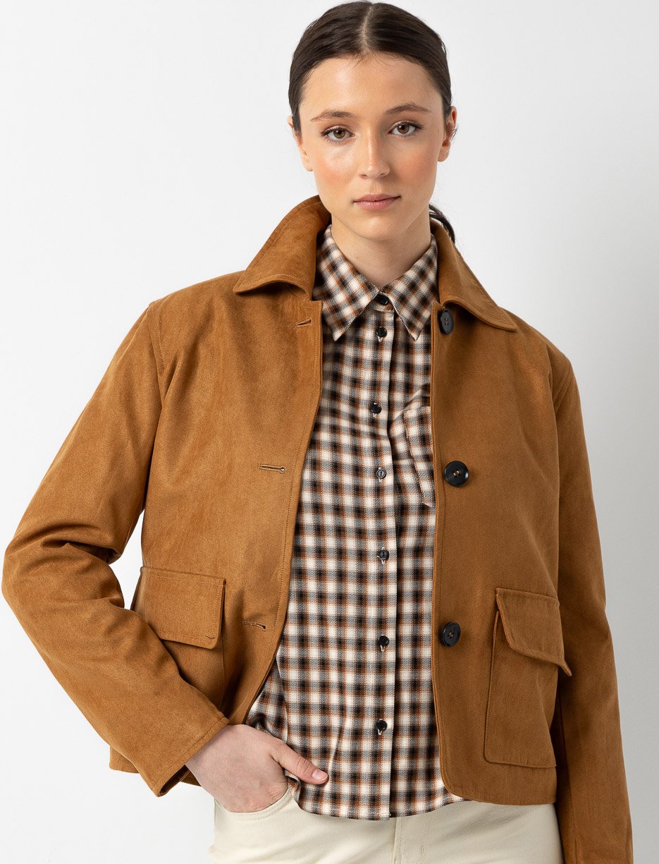 Une veste courte au charme intemporel, parfaite pour compléter vos tenues d’automne. Son col chemise et ses poches à rabat lui donnent une allure soignée, mais décontractée.