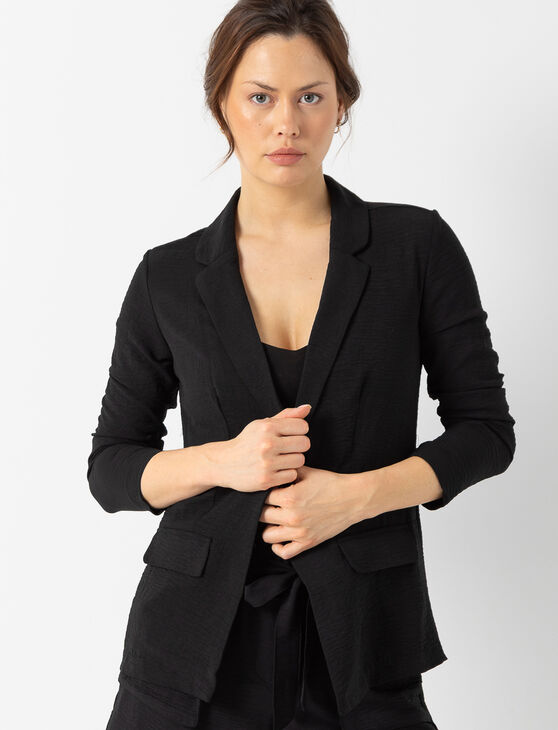 Élégant et structuré, ce blazer apporte une touche de sophistication à toutes vos tenues, du bureau au 5 à 7.